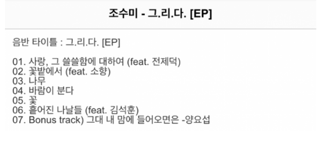 피쳐링을하신다른분들도 정말어마무시한가수분들이신데 그사이에 아이돌이 무려솔로곡으로 트랙의한부분을 채운다는점에대해 팬으로써 정말 자랑스럽고 영광임ㅋㅋㅋㅋㅋ