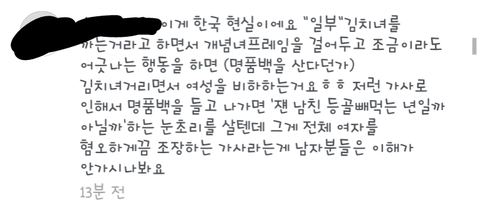 근데 왜 우리 여자들이 싸그리 욕을 먹어