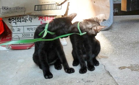 새끼냥이 묶어두었다 눈살 찌푸리실분 많으시겠지만 어쩔수없는 임시 방편이네요..