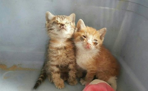 저번 사연으로 두눈의 고름으로 눈을 못떳던 이 두새끼냥이들이