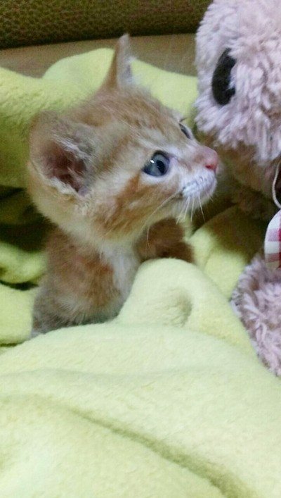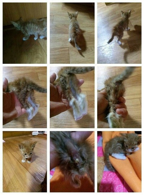 극심한 영양불균형상태로 초등학생에게 구조된 새끼냥이입니다.