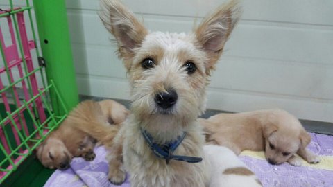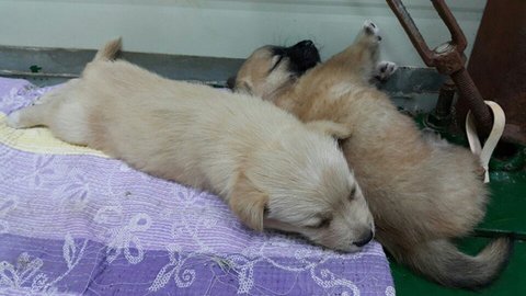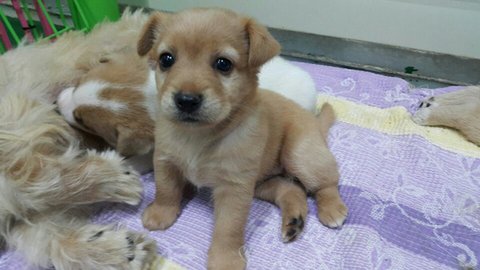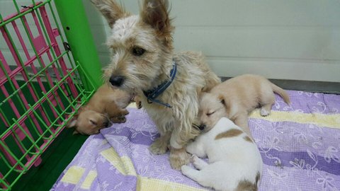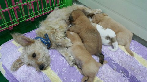보호소앞에 유기된 어미와 새끼들입니다.