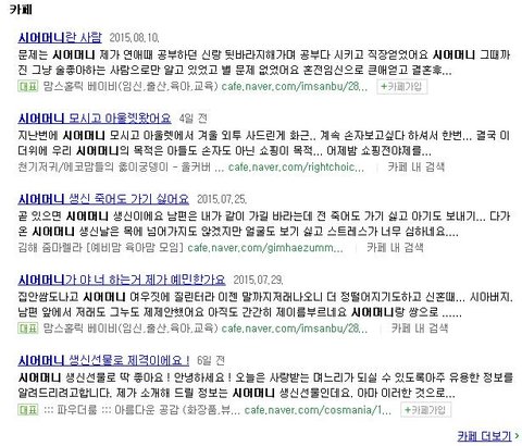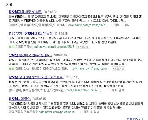 두 번째 사진은 네이버에 시어머니/장모님을 검색하였을 때 상위에 올라오는 내용 입니다.