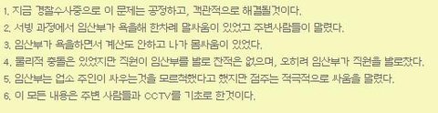 말싸움이 있던건 맞지만 임산부가 욕을하고, 계산도 안하고 오히려 발로찬건