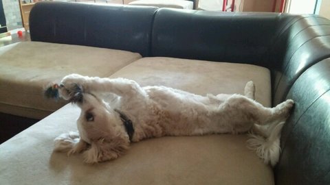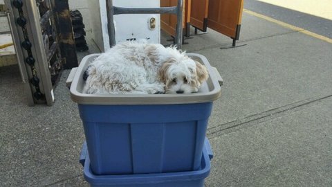 바닥에 내려놓자니 혀바닥으로 길거리 청소해줄꺼 같아서 깨끗한 박스위에 올려놨더니 편안하게 자리잡는 노아~ 저러고 있으니 이삿짐위에 강아지모양 솜인형 같기도 하네요~ㅋㅋㅋ