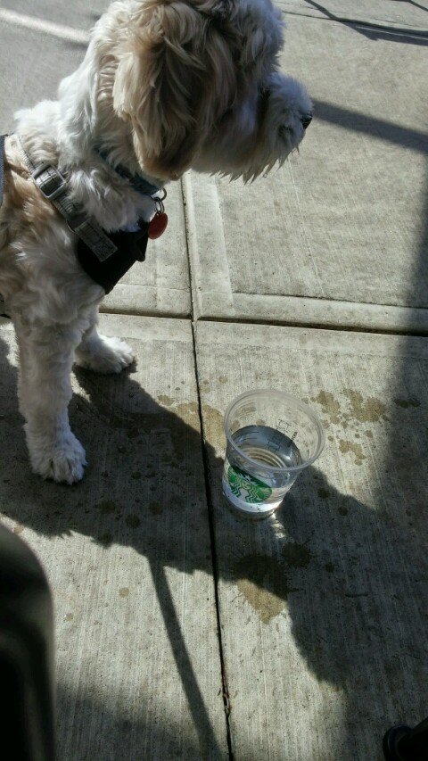 차에서 내리기전에 물 주니깐 먹지도 않고 치우라고 하더니..... 스타벅스 음료잔에 주니 벌컥벌컥....