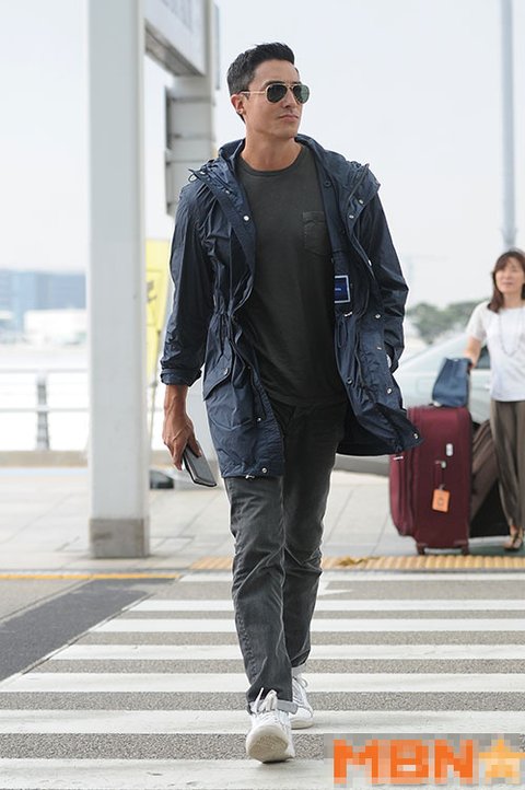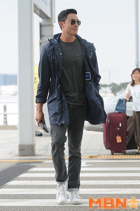 젠틀한 공항패션을 선보였네요.