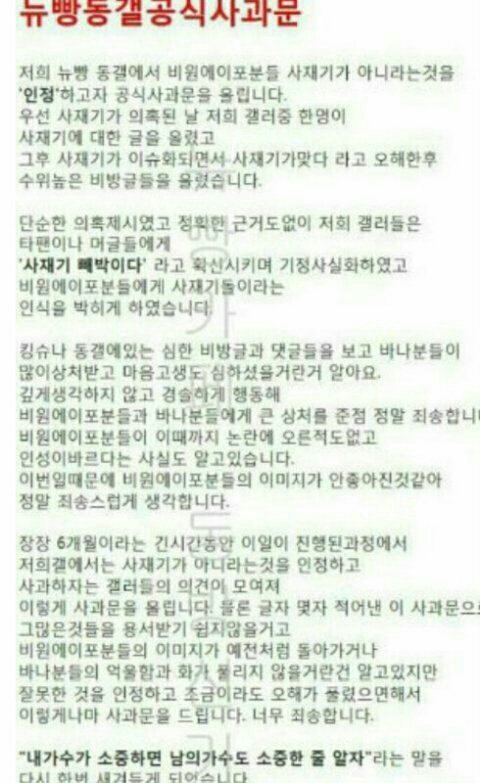제발 그만 좀 몰아가;; 이미 사과받고 다 끝난 일 또 들춰내니? 애초에 ㅅㅈㄱ 일은 ㅋ들이 사재기돌로 인식 짱박을려고 시작했던거잖아
