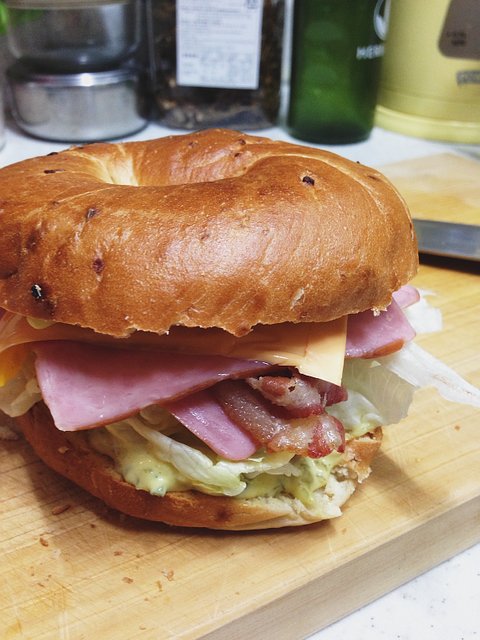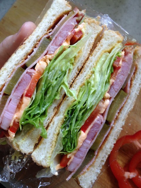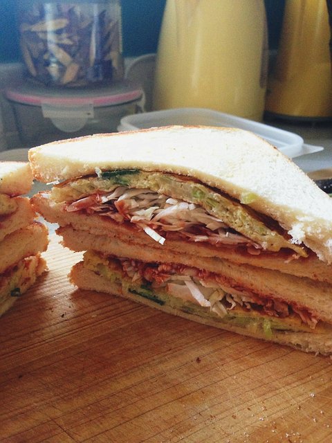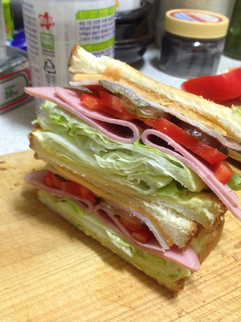 그냥 이것저것 잔뜩 넣은 큰 샌드위치가 만들어보고 싶어서 만든 점보 사이즈 샌드위치예요.