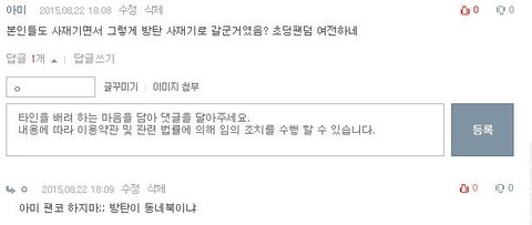 타돌 악플 달아본적 있어? 나는 악플은 아닌데 팬코인척?은 해봄 아미 닉 달고 이상한댓 달았다가 답댓으로 팬코하지 말라는거 솔직히 아미 닉 달고 뭔짓해도 타팬들 우리가 한줄 모르더라 악플은 무서워서 못달겠음 이해 못하는애들 있을까봐ㅇㅇ