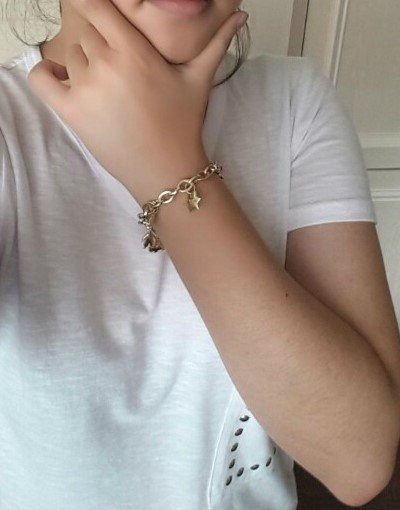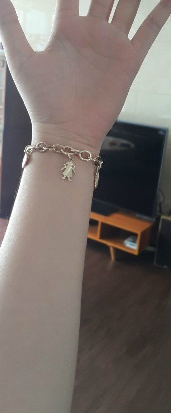 아래 사진은 AS 맡기기 전 사진입니다.금팔찌의 위치가 팔 중간에 와 있습니다.