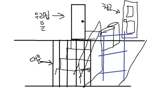 대문에 자물쇠를 걸까 했는데 그림처럼(;;) 대문이 사람 키보다도 낮아서