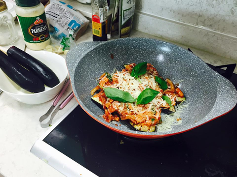 가지 오일뿌려서 그릴에 살짝 익힌다음에 토마토소스랑 모짜렐라치즈 올려서 오븐에 구웠어요