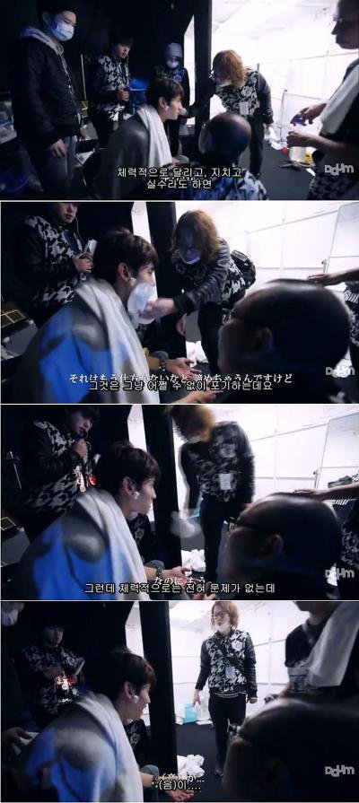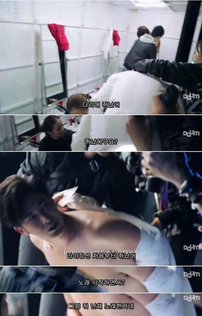 곡 부르기 전부터 윤호 허벅지에 쥐가 났었음..
