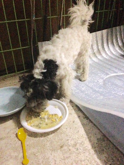 죽을 들고 나가니 꼬리를 흔들더니 . 이녀석 비틀대며 일어남 ....