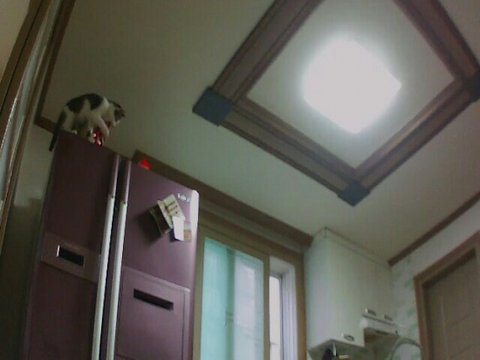 요녀석 아무리 찾아도 없어서 캠을 올려서 봤더니 냉장고 위에 올라가서 제 라면을 초토화 시키고 있더라구요 ㅠㅠ 제가 징아 ~~~~징아~~~불러봐도 이미 우리 징이는 정줄을 놨음 ㅠ ㅠ ㅠ 한참을 놀더니 싱크대를 밟고 내려오드라고용 ㅠ ㅠ 역시 냥이들은 높은 곳을 좋아한다는 말이 맞나봐요 ~