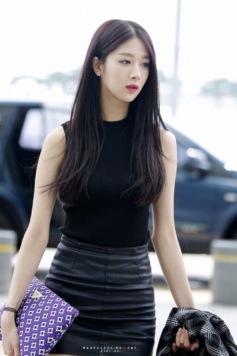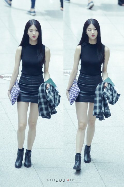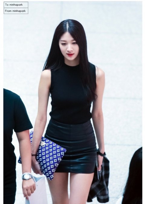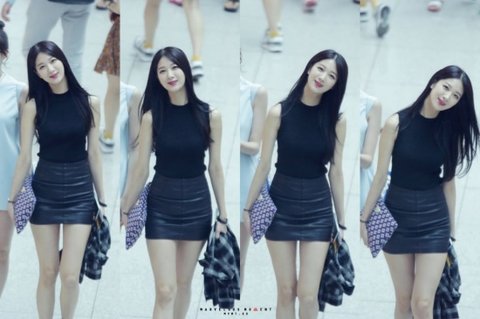가죽치마와 블랙 상의로 시크함을 준 민하