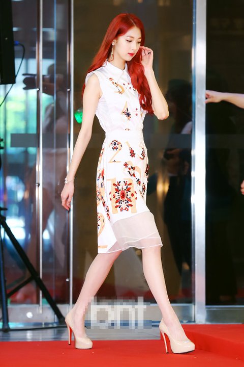 핫팬츠에 흰 티 입은 민하. 꿀리지 않아요.