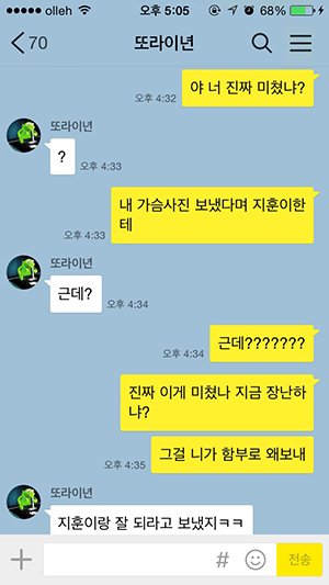 저랑 썸남인 남자애한테 그 사진을 보냈다네요...