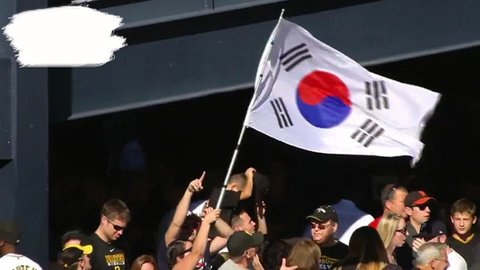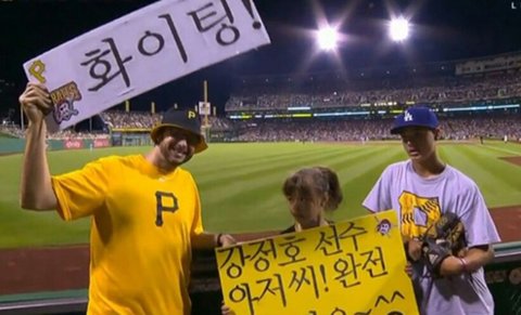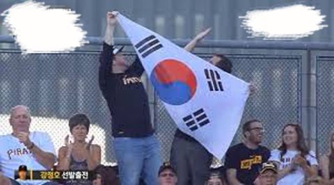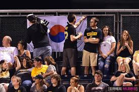 피츠버그의 팬들은 자진해서 태극기를 흔들고