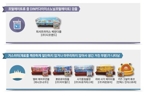 가소제인 프탈레이트류 중 DINP(다이이소노닐프탈레이트)가 1개 제품에서 16.8% 검출되었다.