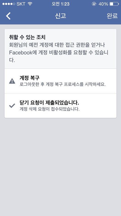 더보기>신고>해당계정복구 또는삭제 > 계정닫기