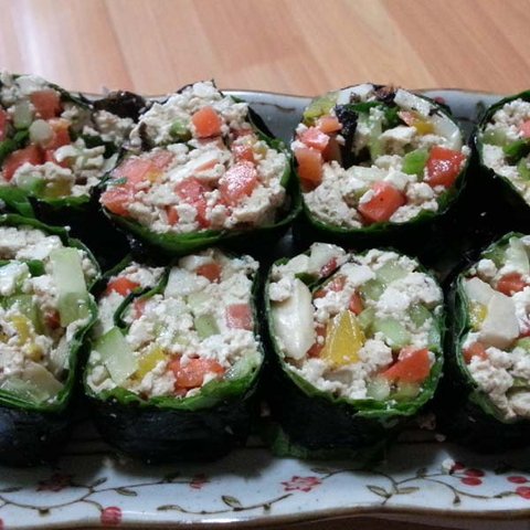 두부야채김밥 - 밥이 아니니까 김이 잘 안붙어요.