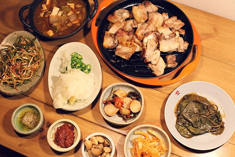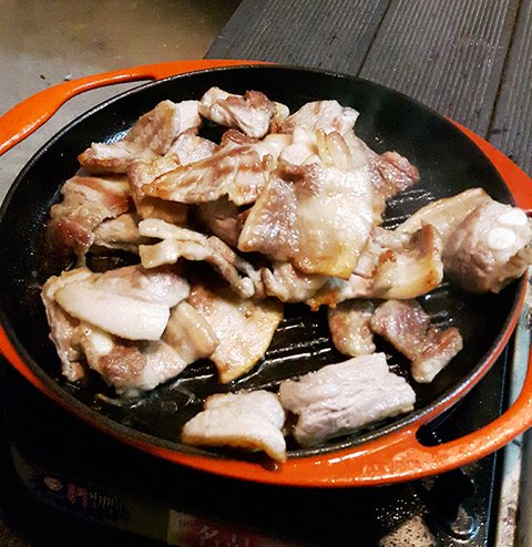 삼겹살 참 좋아하는데 집에서 구우면 너무 더워서 밖에서 제가 구워서 식탁위에 두고 먹어요 ㅎㅎ