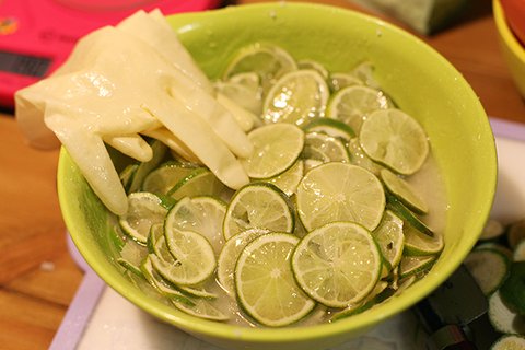 라임 설탕 1:1.5 비율로 섞어서 병에 담에 일주일 숙성후에 탄산수에 섞어 에이드로 마셔요