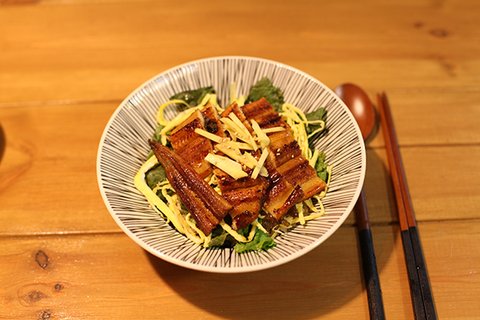대충 시장에서 구워 파는 장어 사다가 계란 지단 올리고 장어 올리고 생강 올려 먹었어요.