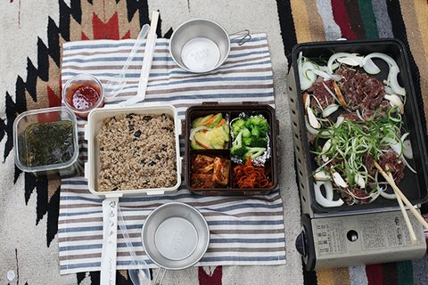 취사가 되는 곳이라 불고기도 양념해서 파채랑 양파 듬뿍 올려 구워먹으니 별미네요.