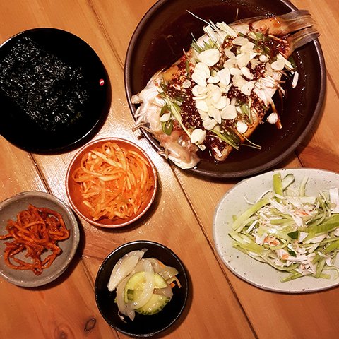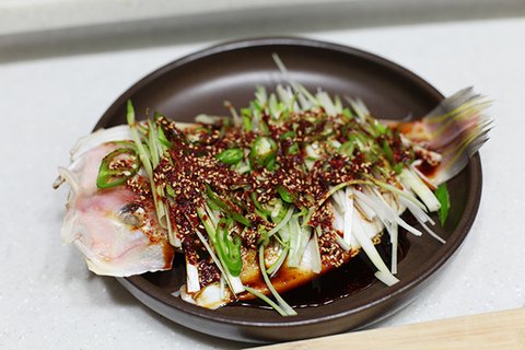 이건 옥돔 찜 냉동 옥돔 살짝 해동해서 다마리간장+파채+고추올려서 찜했어요.
