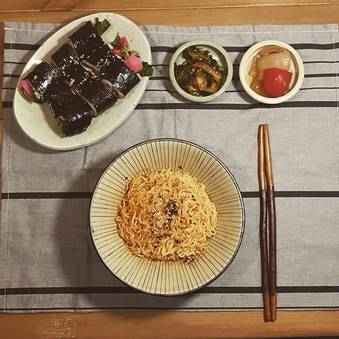 이건 주말 늦잠자고 걍 혼자 편하게 라면 끓여 먹었어요.