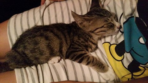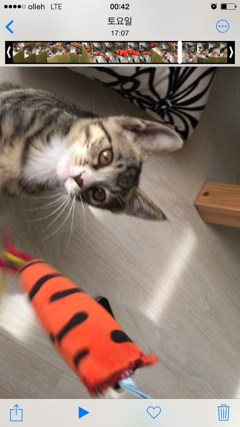 고양이가 안가서 데리고 차에 탔는데 배가 불러서 그런지 자더라구요 처음 본 사람안테 안겨서 길냥이들은 보통 사람을 경계하잖아요 얘는 약간 개같아요 성격이