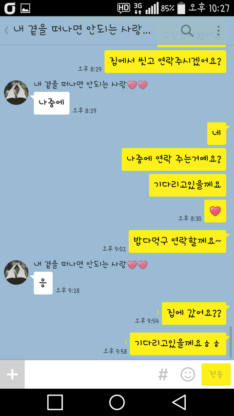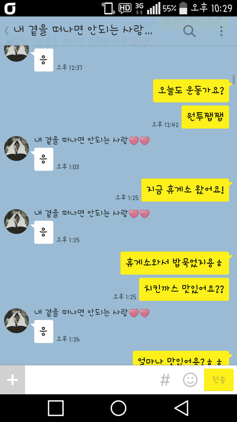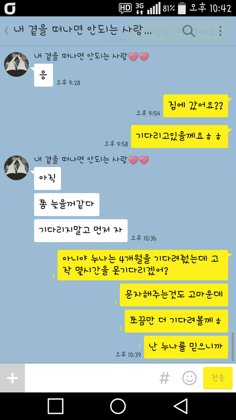 그래서 울린 다음날부터는 하나하나 사소한 것까지 말하거나 미치도록 사랑을 줄려고 노력했습니다.