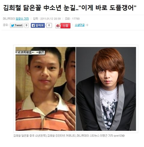2011년에 한국에서 김희철 닮은꼴 중국 소년으로 뜬 적있어요...ㅋㅋ...