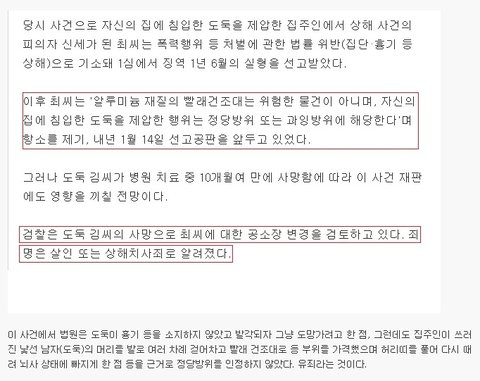 흉기를 소지하지 않았고, 도망치려하긴 했지만 강도는 강도죠 집주인이 흉기를 소지했는지 안했는지 밖에 공범이 있는지 없는지 어찌아나요..