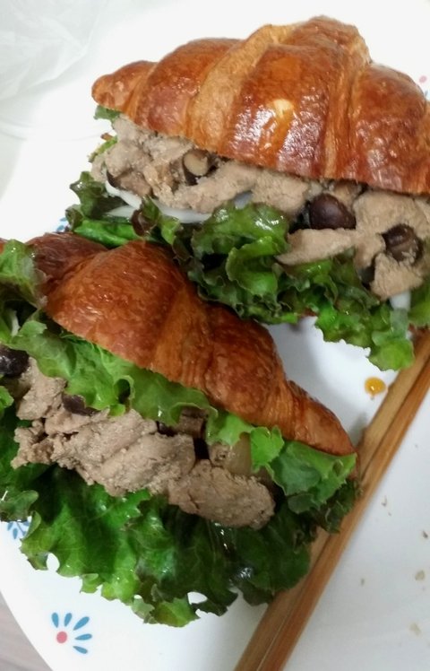 크루아상이 너무 이뻐서 무작정 사오긴했는데 속재료가 마땅치않아 고기재놨던걸 사용해보았어요 저는 먹지않았지만 맛있다고 하더라구요