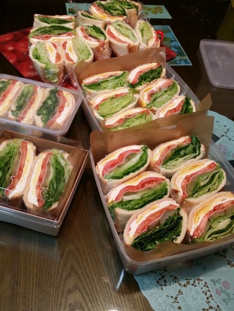 요즘 제과점에선 이렇게 양상추 양을 많이 넣어서 샌드위치를 만들길래 따라해보았습니다