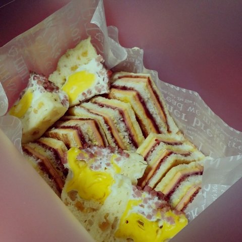 위에서만든 계란빵과 몬테크리스토샌드위치를 함께 담아서 선물했습니다