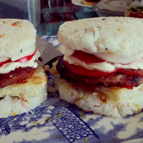 급으로 밥을 뭉쳐서 살짝구워 빵대신 사용하였습니다