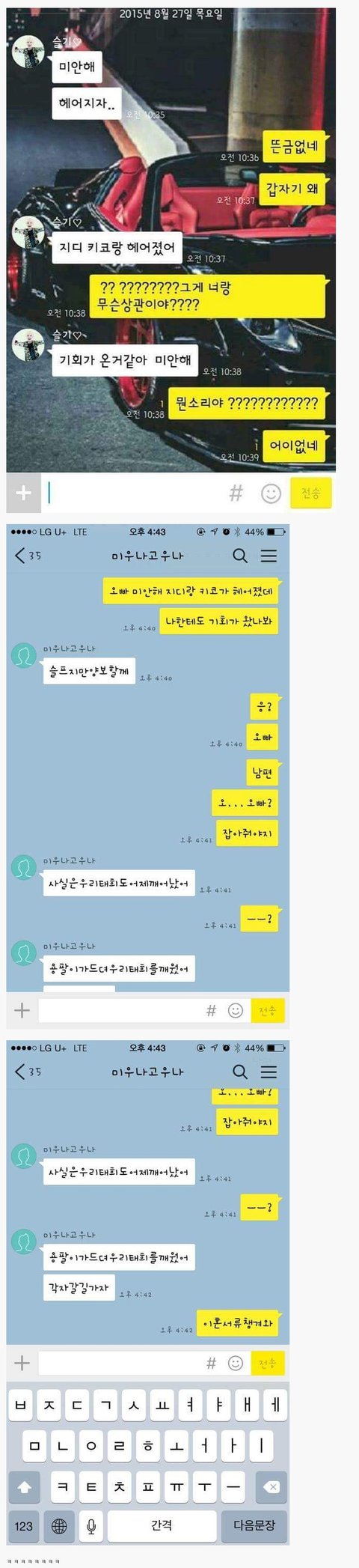 지디 때문에 차인 남자 카톡을 보고 장난쳐봄
