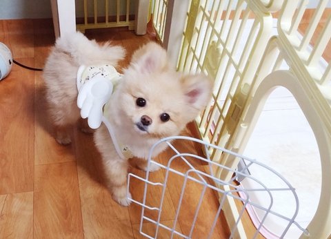 이때는 애견 펜션 가려고 예쁜 천사 옷 입혀놨는데