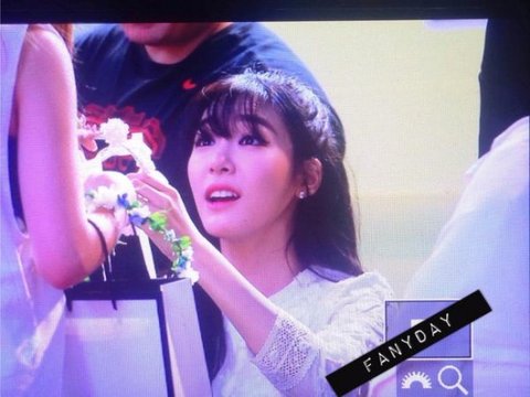한 팬으로부터 화관을 받은 티파니