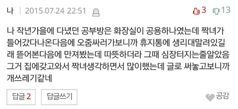 내가그때ㅅㄹ중이라서 화장실에서ㅅㄹ대갈고나왔고