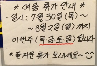 7월 30일(목) ~ 8월 2일(일) 까지 목,금,토,일을 휴관한다고 되어있더군요.