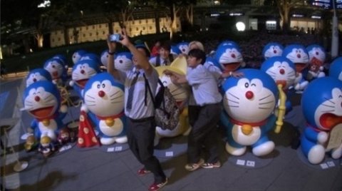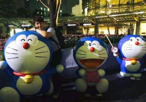 일본에서 그가 도라에몽과의 만남에 행복해하고 있을 때