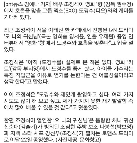 [한국TV드라마] 조인성씨 인터뷰중 경수