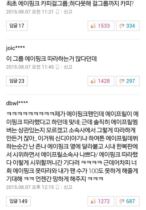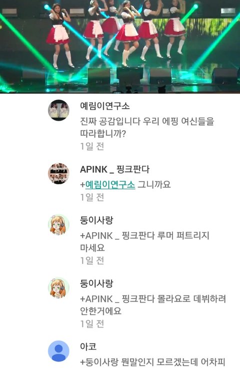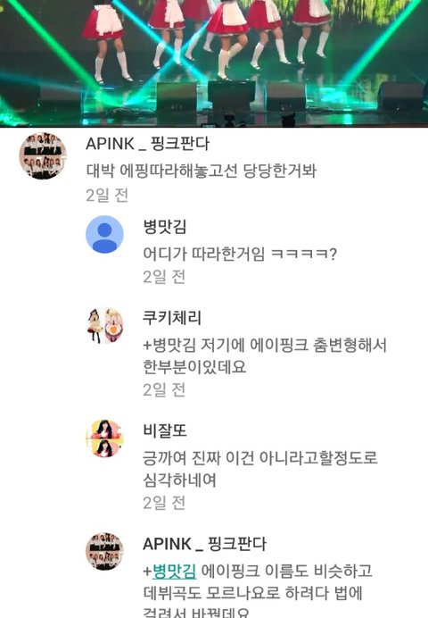 소속사에서에이핑크따라했다는기사도냈다그러고..ㅋㅋㅋㅋ