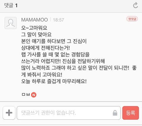 마지막은 앨범 수록곡중 따끔이라는 곡에 나오는 랩가사